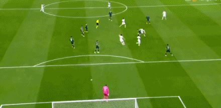 第6分钟,皇马右路快速反击,罗德里戈拿球高速推进45度角送出精妙贴地弧线球,皮球刚好绕过3名回防球员到了后点,维尼修斯突入禁区抢点获得绝佳机会,只是他还是慢了半拍,在干扰下挑射打偏了。第27分钟,皇马后场断球反击,连续传递从左侧转移到右侧,贝林厄姆中圈弧顶处接球往前推进斜塞,罗德里戈及时插上接球突入禁区获得小角度半单刀良机,罗德里戈调整好脚步推射远角得手,皇马1:0首开纪录。